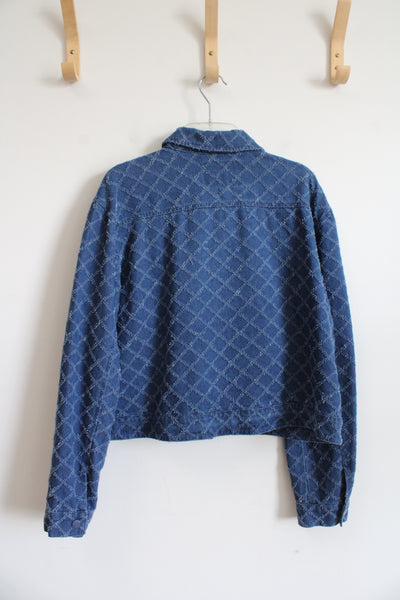 Solitaire Textured Patterned Denim Jacket | M