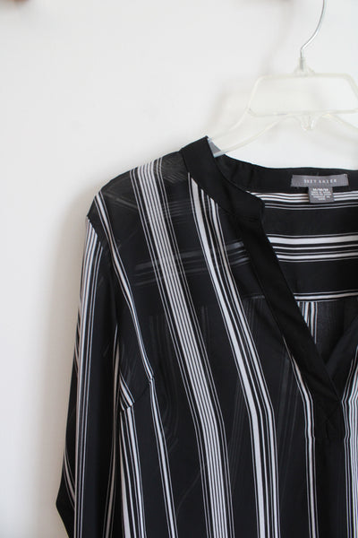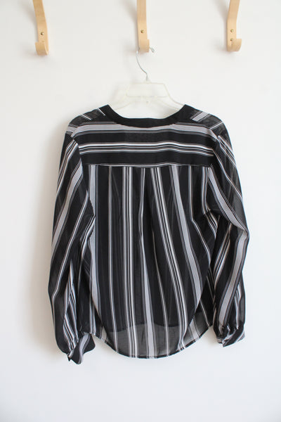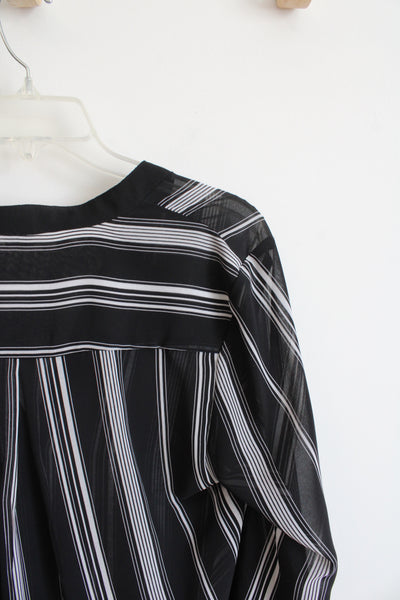 Suzy Shier Black & White Striped Sheer Long Sleeved Top | M