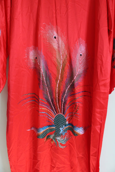 Vintage Red Silk Embroidered Peacock Robe | L