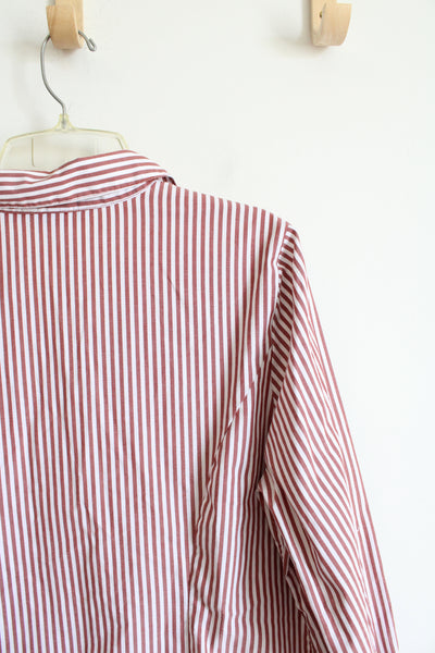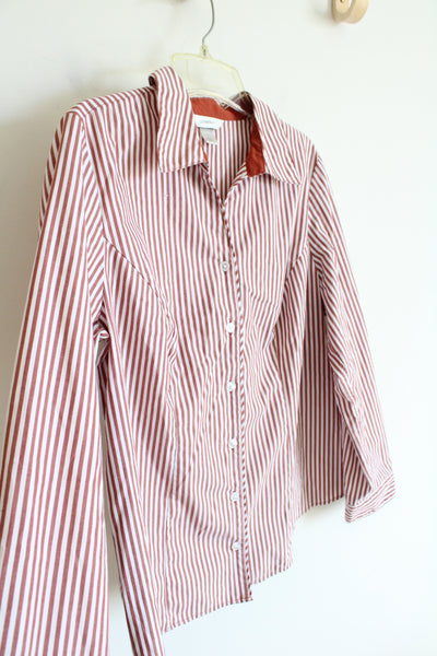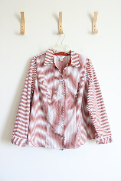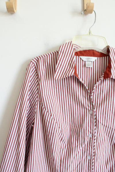 CJ Banks Terracotta Orange & White Striped Button Down Top | X