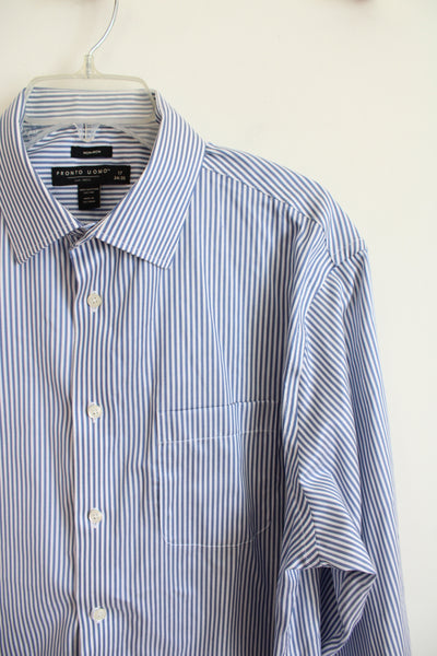 Pronto Uomo Blue & White Striped Button Down Shirt | 17 34/35