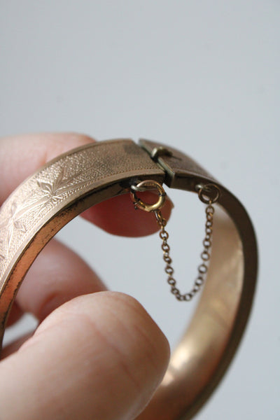 10K Gold Fill Art Deco Etched Bangle Bracelet