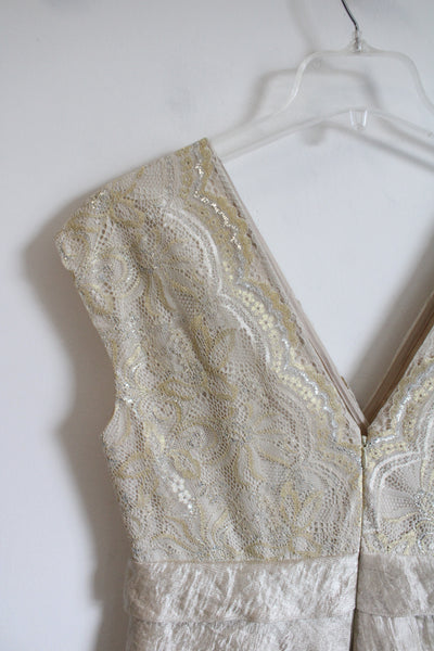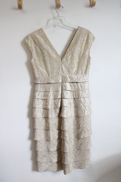 Adrianna Papell Metallic Gold Ruffled Lace Dress | 10