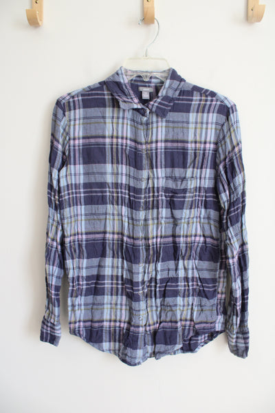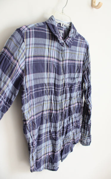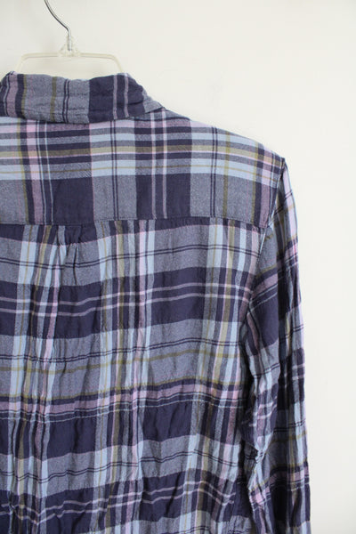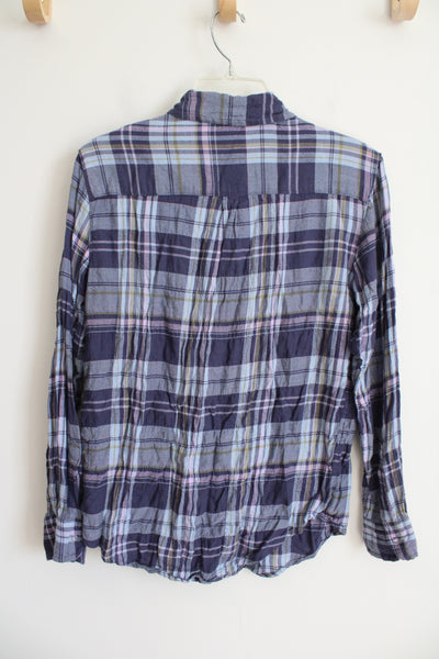 Aerie Blue & Pink Plaid Button Down Long Sleeved Top | XS
