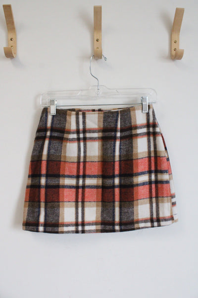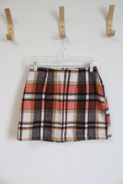 Altar'd State Orange Brown & White Plaid Skirt | XS