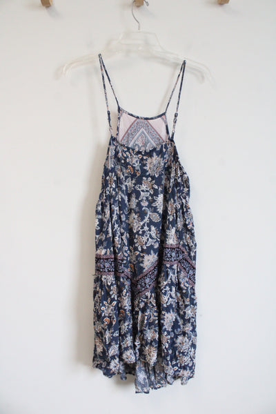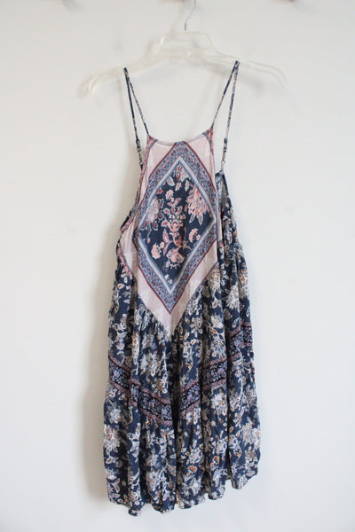 American Eagle Blue & Pink Patterned Boho Dress | L