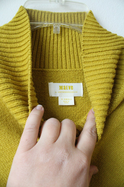 Anthropologie Maeve Crystal Mock Neck Chartreuse Tunic Sweater | XS