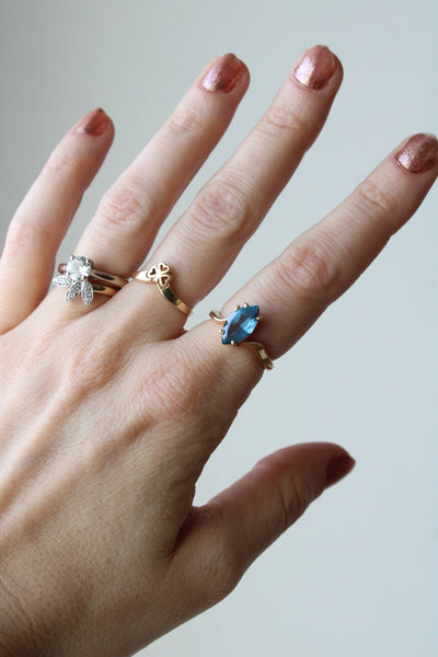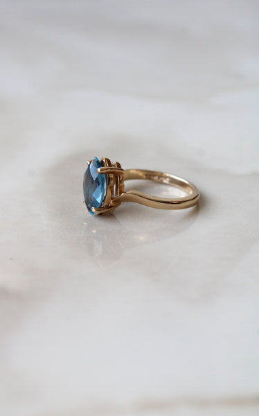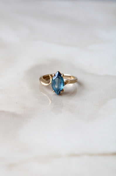 Blue Topaz Marquise Cut 14K Yellow Gold Ring | Size 6.5
