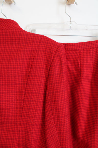 Christian Dior Vintage Red Wool Houndstooth Blazer & Skirt Set | 8
