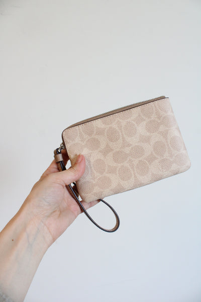 Coach Tan Monogram Corner Zip Wristlet