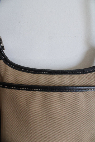 Has some wear on the edges, but otherwise in good condition. No odors. Silver hardware.