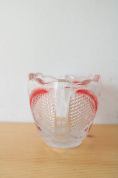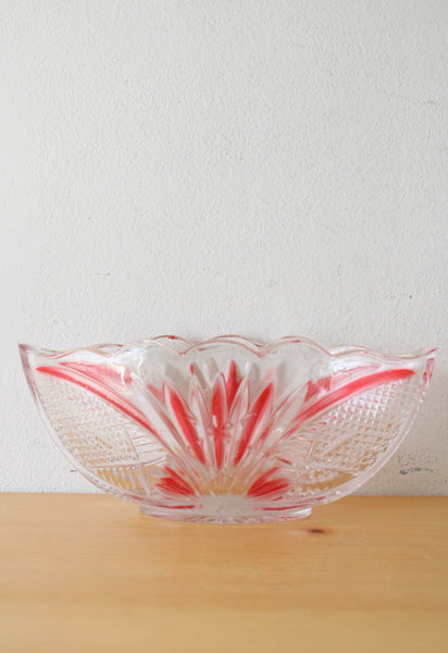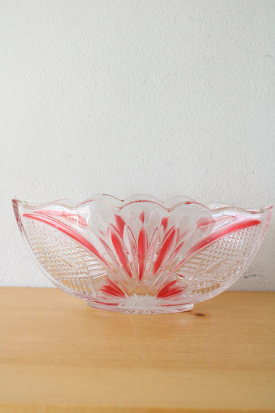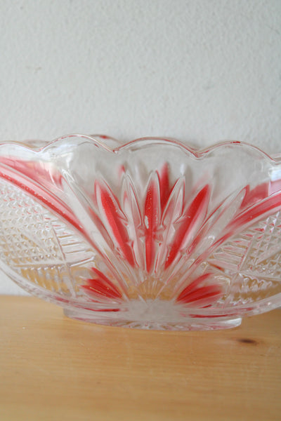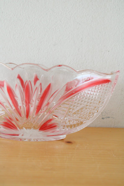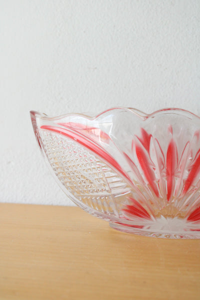 Crystal Clear Red Painted Cut Glass Oval Shaped Dish