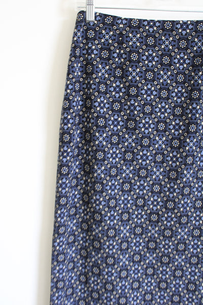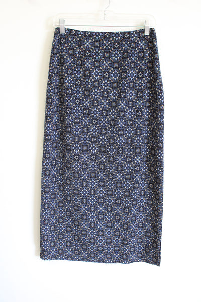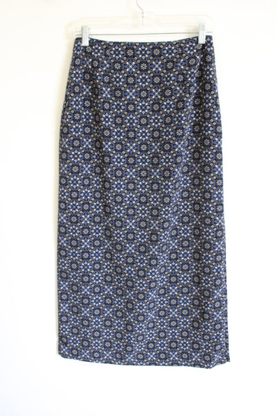 Geoffrey Beene Sport Vintage Blue Black Patterned Slitted Skirt | 6