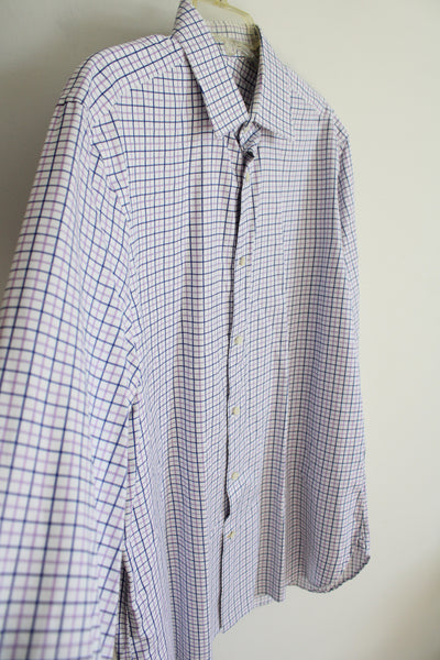 Ike Behar Neiman Marcus Purple Blue & White Plaid Button Down Shirt | 16.5, 34/35