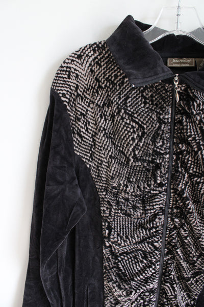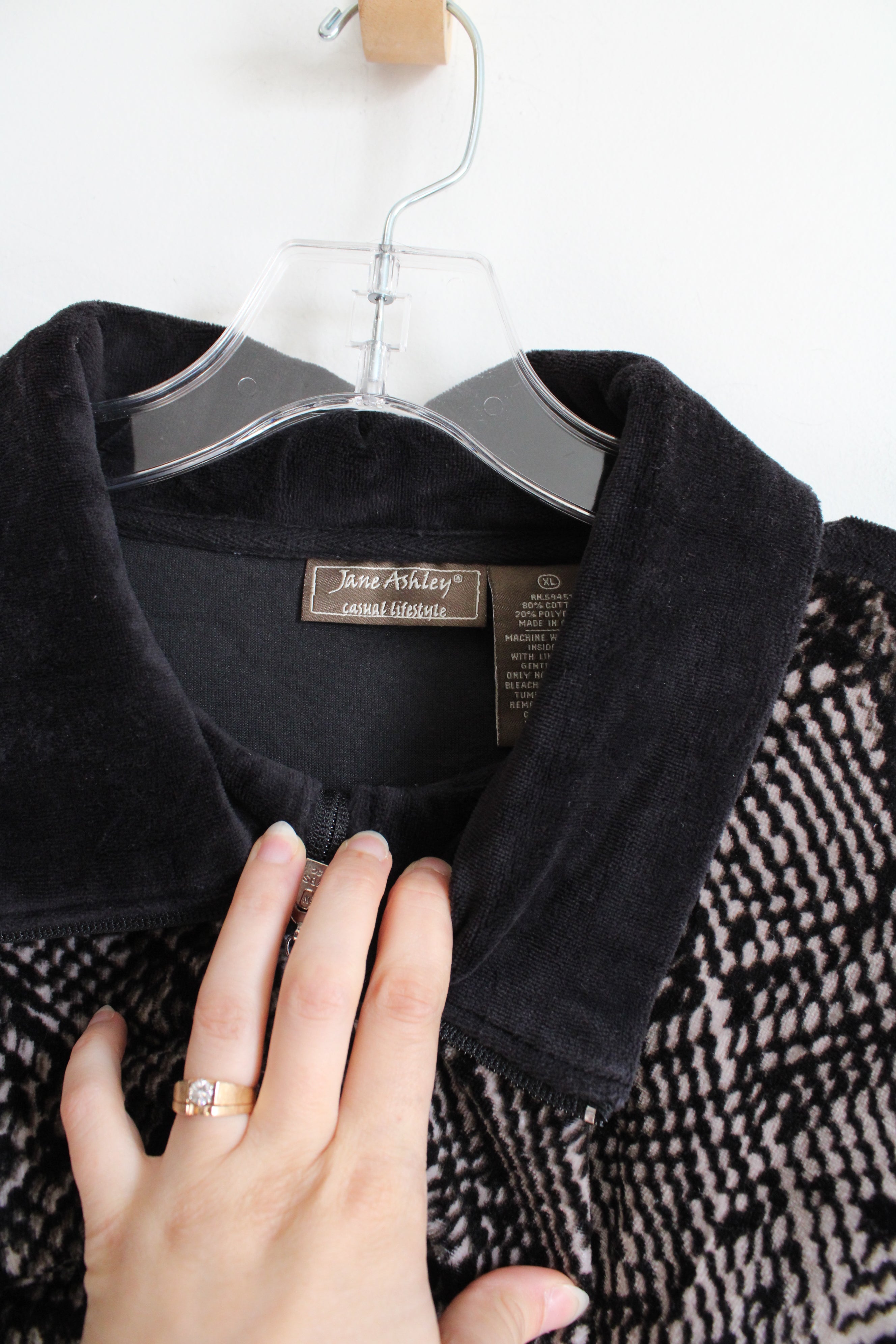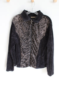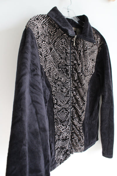 Jane Ashley Casual Lifestyle Velvour Patterned Black Brown Jacket | XL