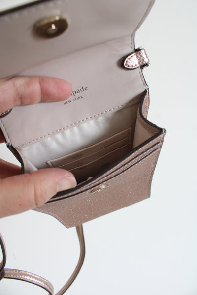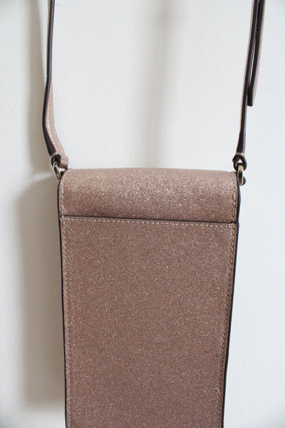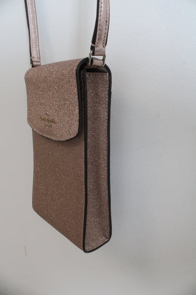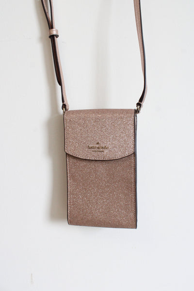 Kate Spade Tinsel North South Pink Glitter Phone Crossbody Bag