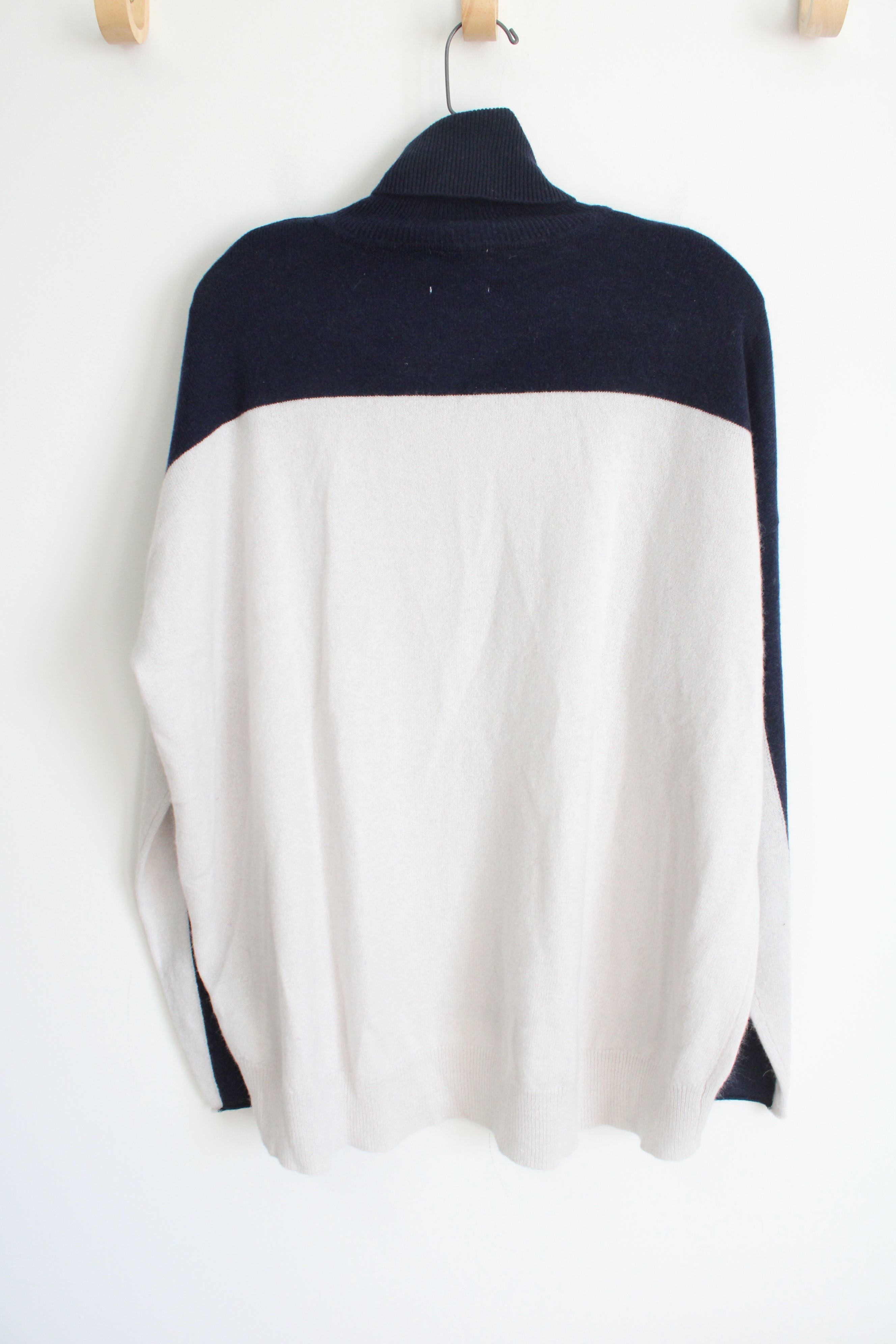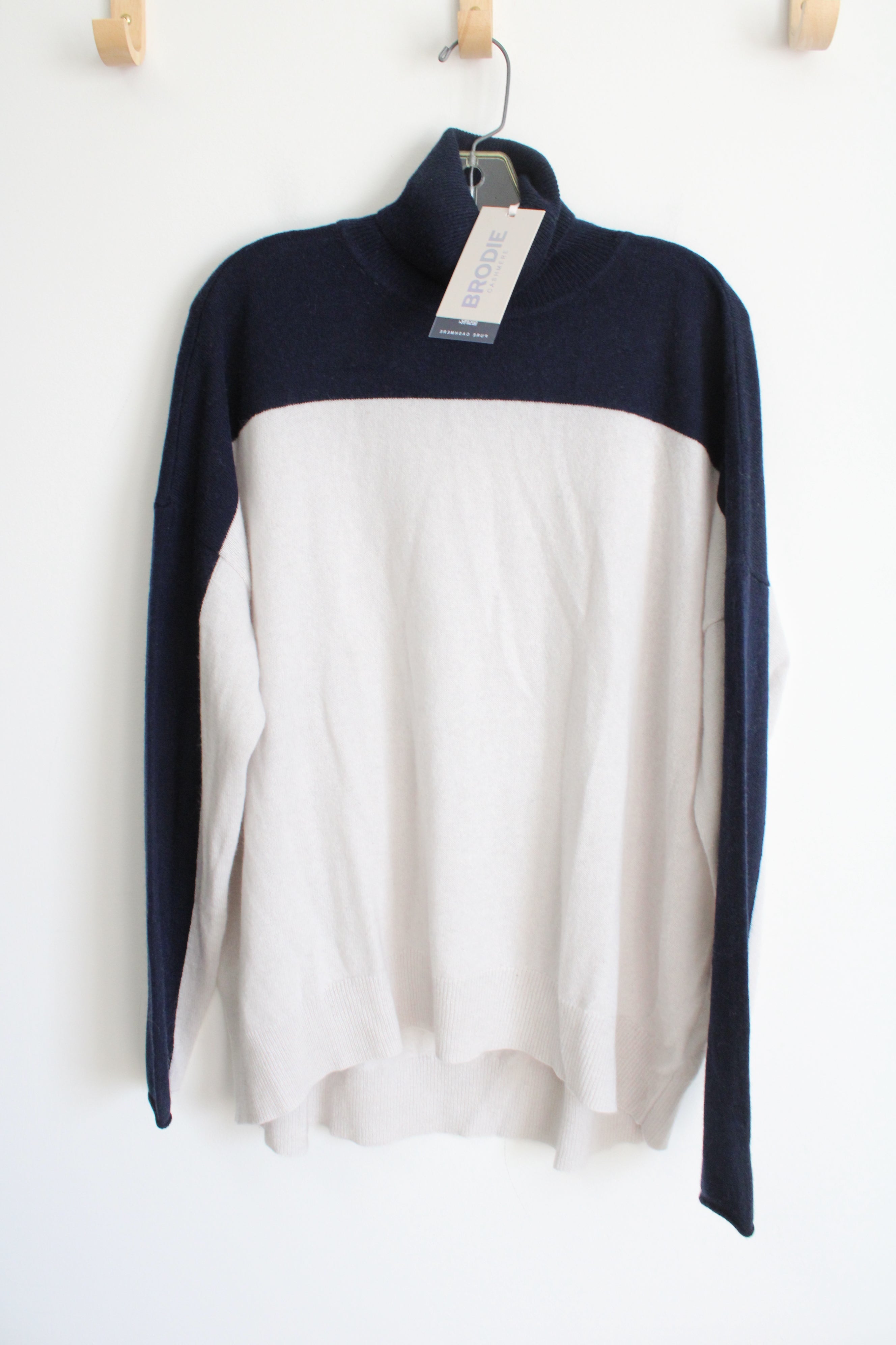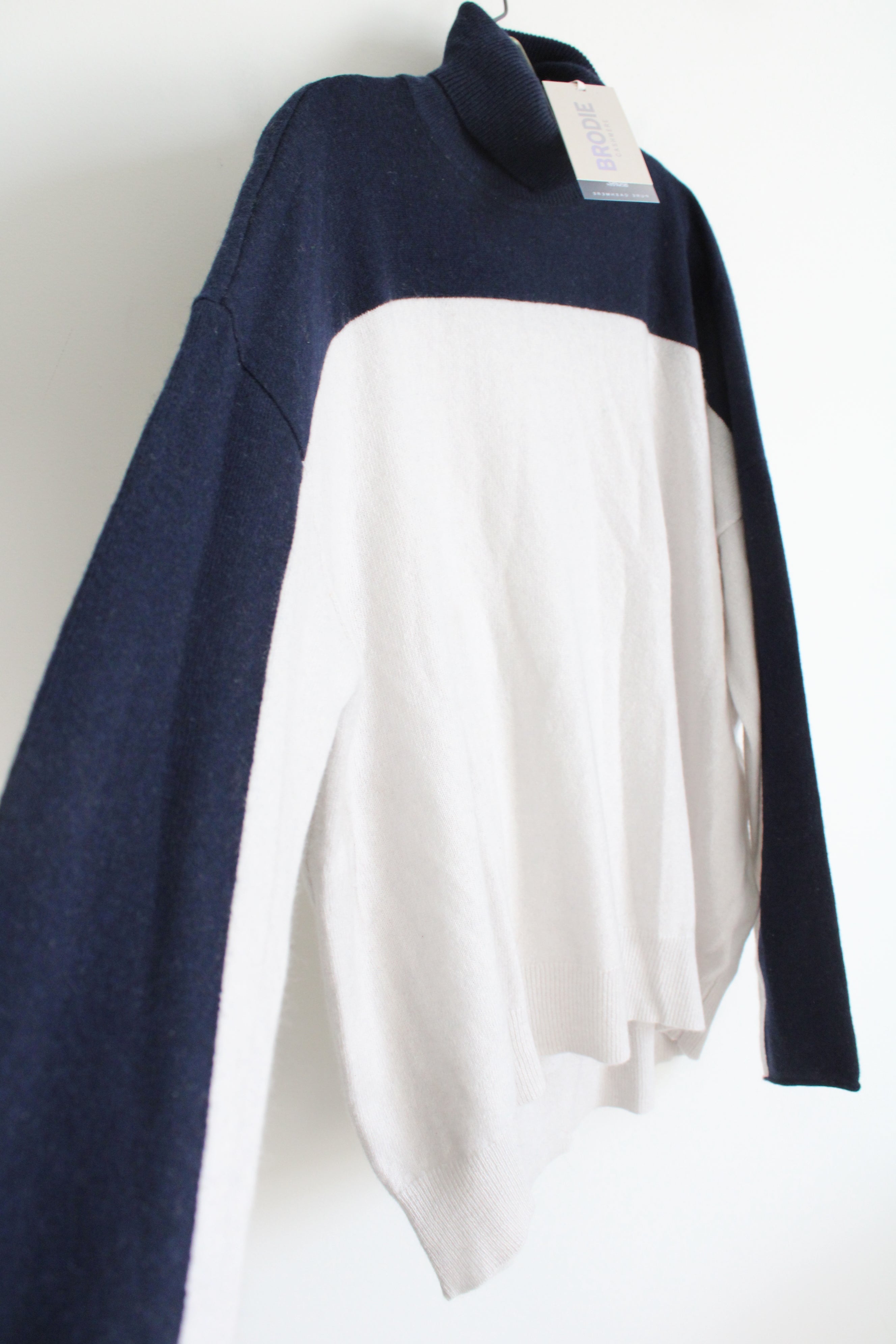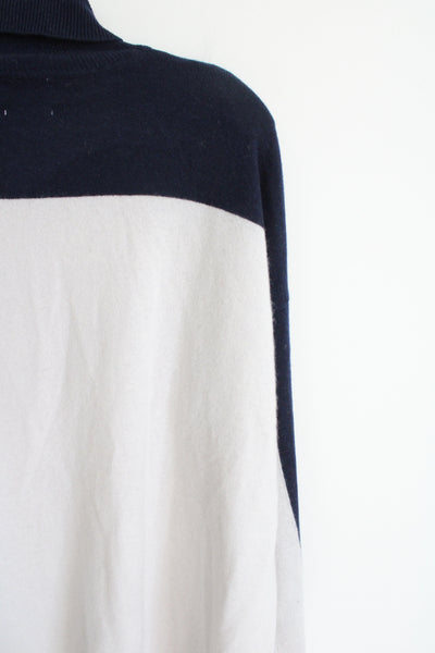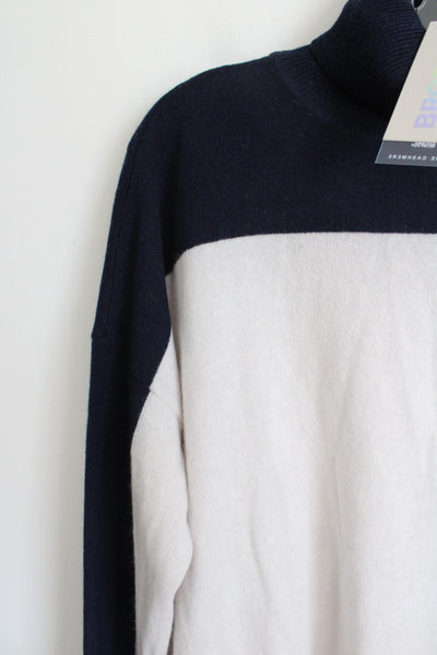 NEW Brodie Cashmere Navy & White Colorblocked Knit Turtleneck Sweater | XL