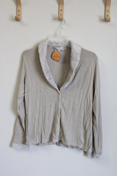 NEW Fresh Produce Cotton Tan Fur Collar Cardigan | M