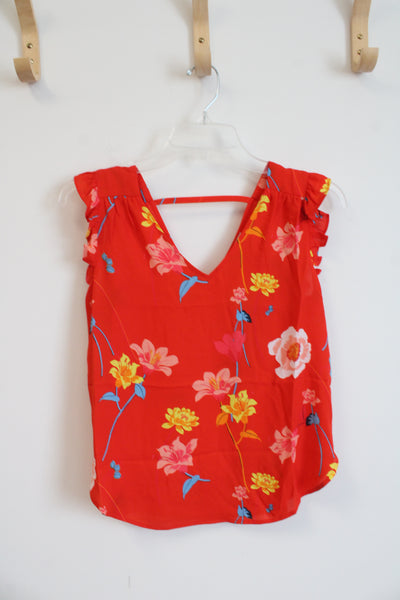 NEW LOFT Orange Floral Flutter Sleeveless Top | XXS Petite