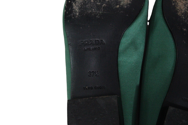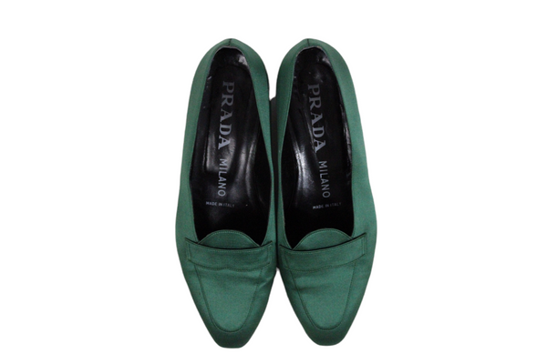 Prada Milano Silk Green Loafer Flats | Size 37 1/2 (6.5)