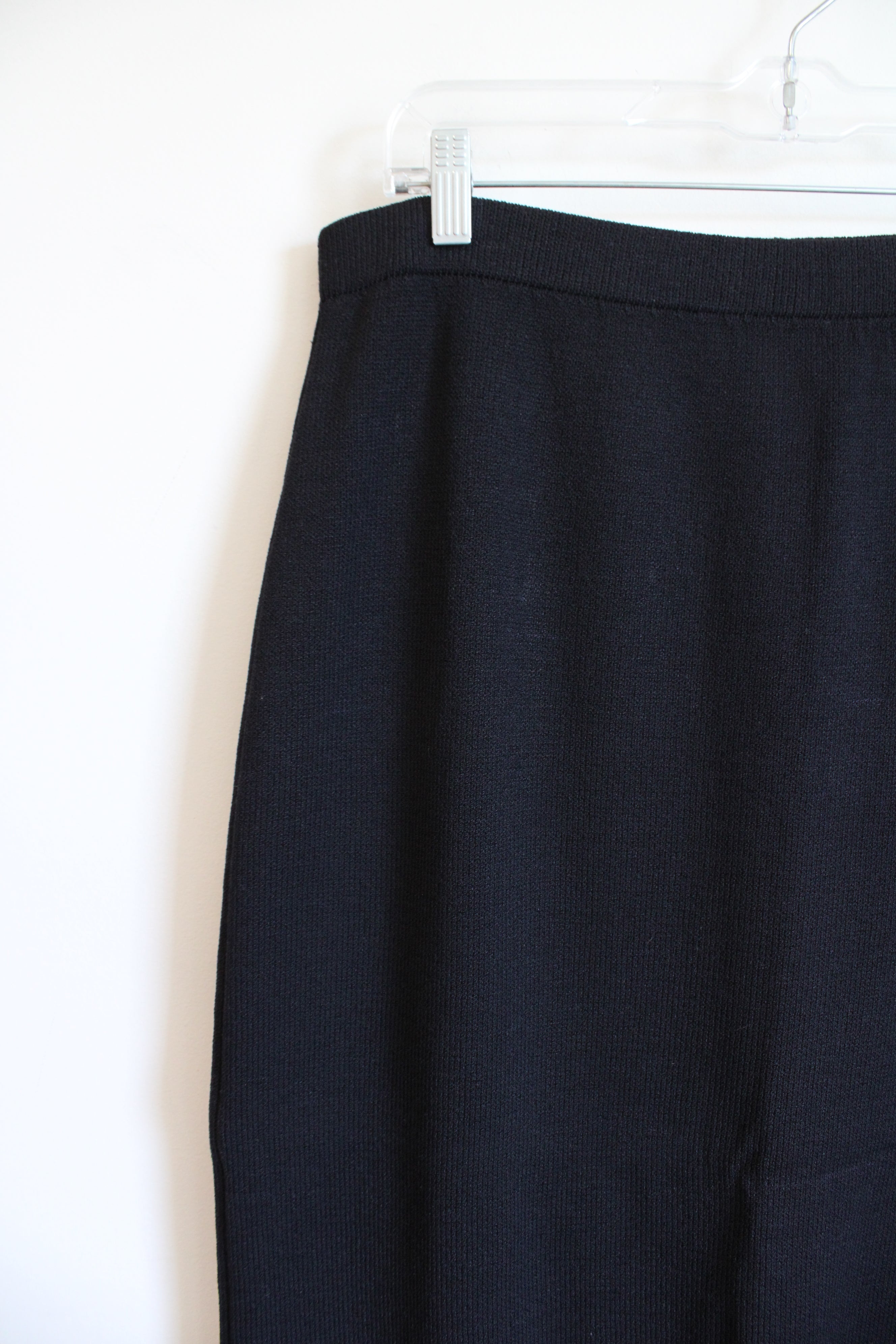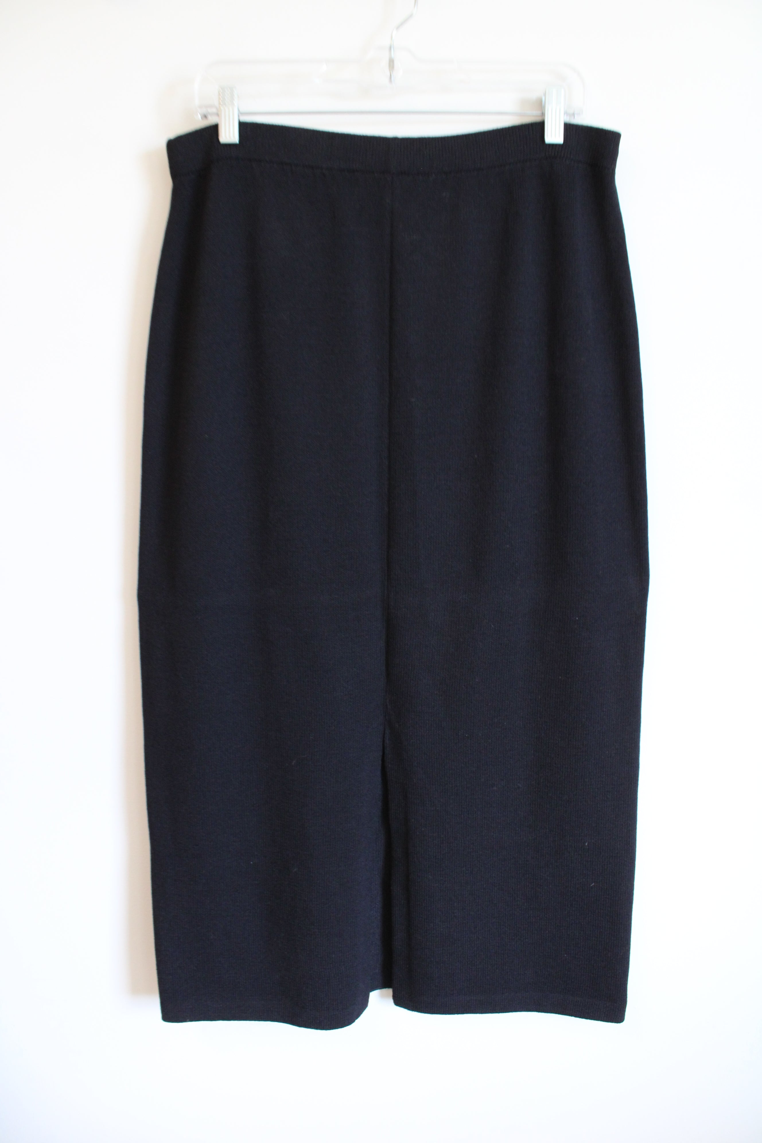 St. John Basics Dark Navy Blue Knit Midi Skirt | 14