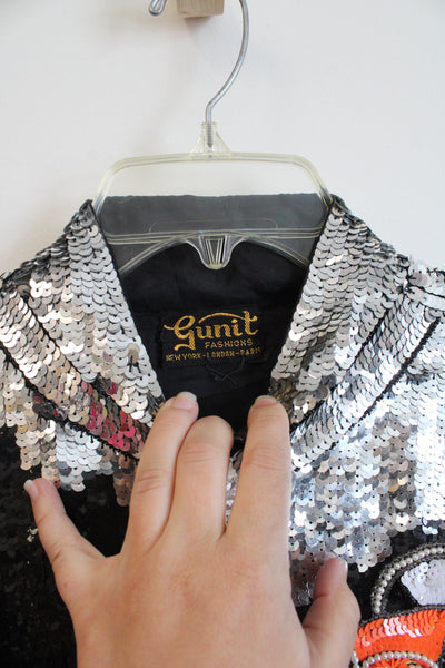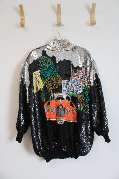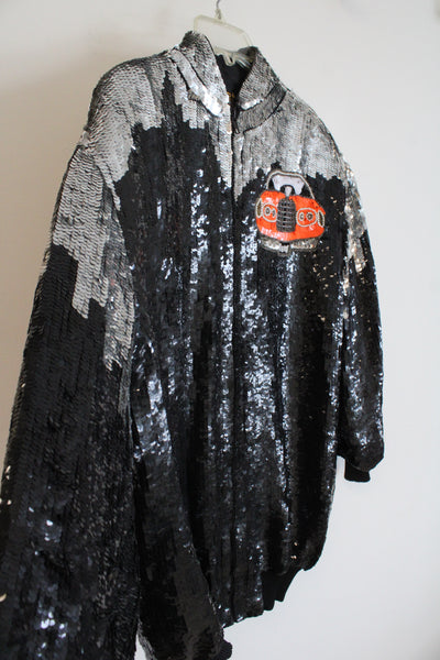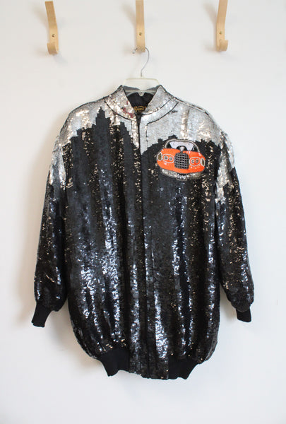Vintage Gunit Black Sequined & Beaded Rolls Royce Bomber Jacket | L/XL