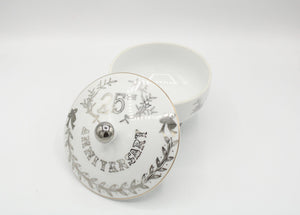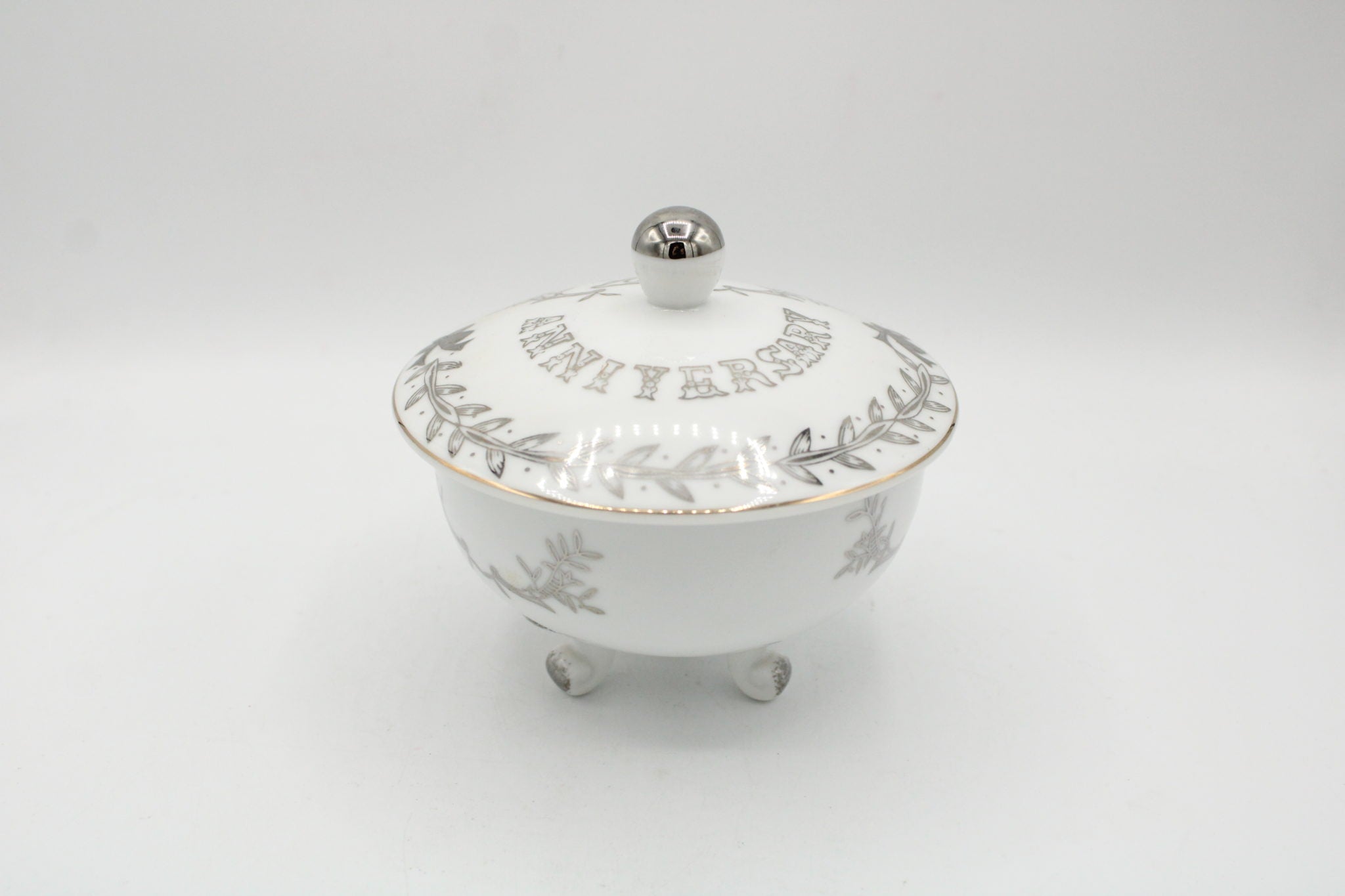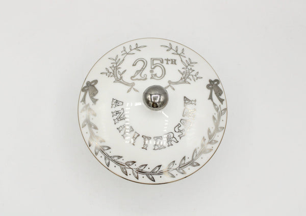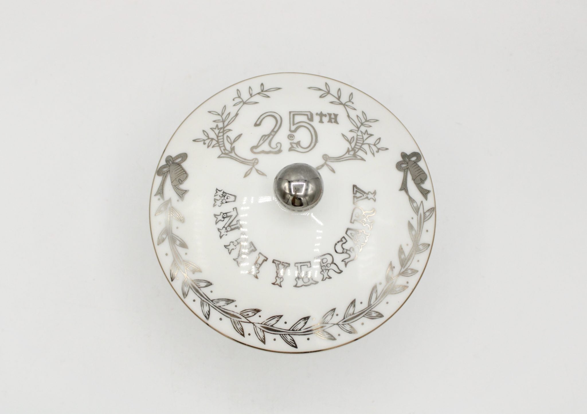 Vintage Lefton 25th Anniversary White and Silver Covered Dish W/ Lid