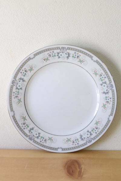 White & Green Floral China Silver Rim Dinner Plate | 10"